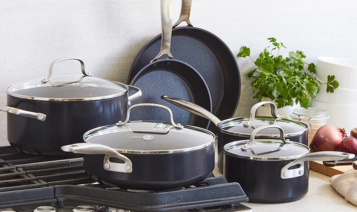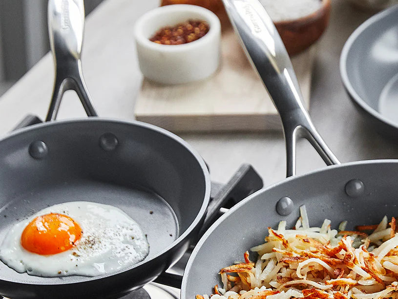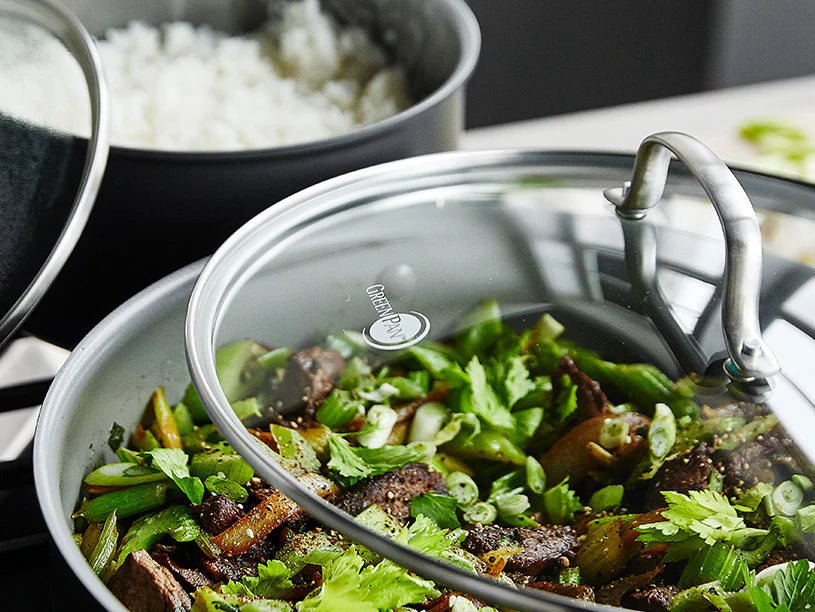 In 2007, GreenPan launched its first pans with a Thermolon™ ceramic non-stick coating. It is made from a sand derivative and is PFAS-free. We produce our Thermolon™ non-stick coating in our own factory. This means we know exactly what’s in our pots, pans, baking moulds, and electric kitchen appliances, and can guarantee that our non-stick coating is completely PFAS-free.