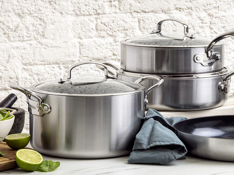 We have a range of techniques to avoid your pan’s handle getting hot. Many of our collection are designed with a V-shaped cut-out, which reduces heat transfer to the handle. What’s more, we also use Bakelite, which heats up much more slowly than stainless steel. It means you can grab your pan at any time without wondering whether the handle will be too hot.